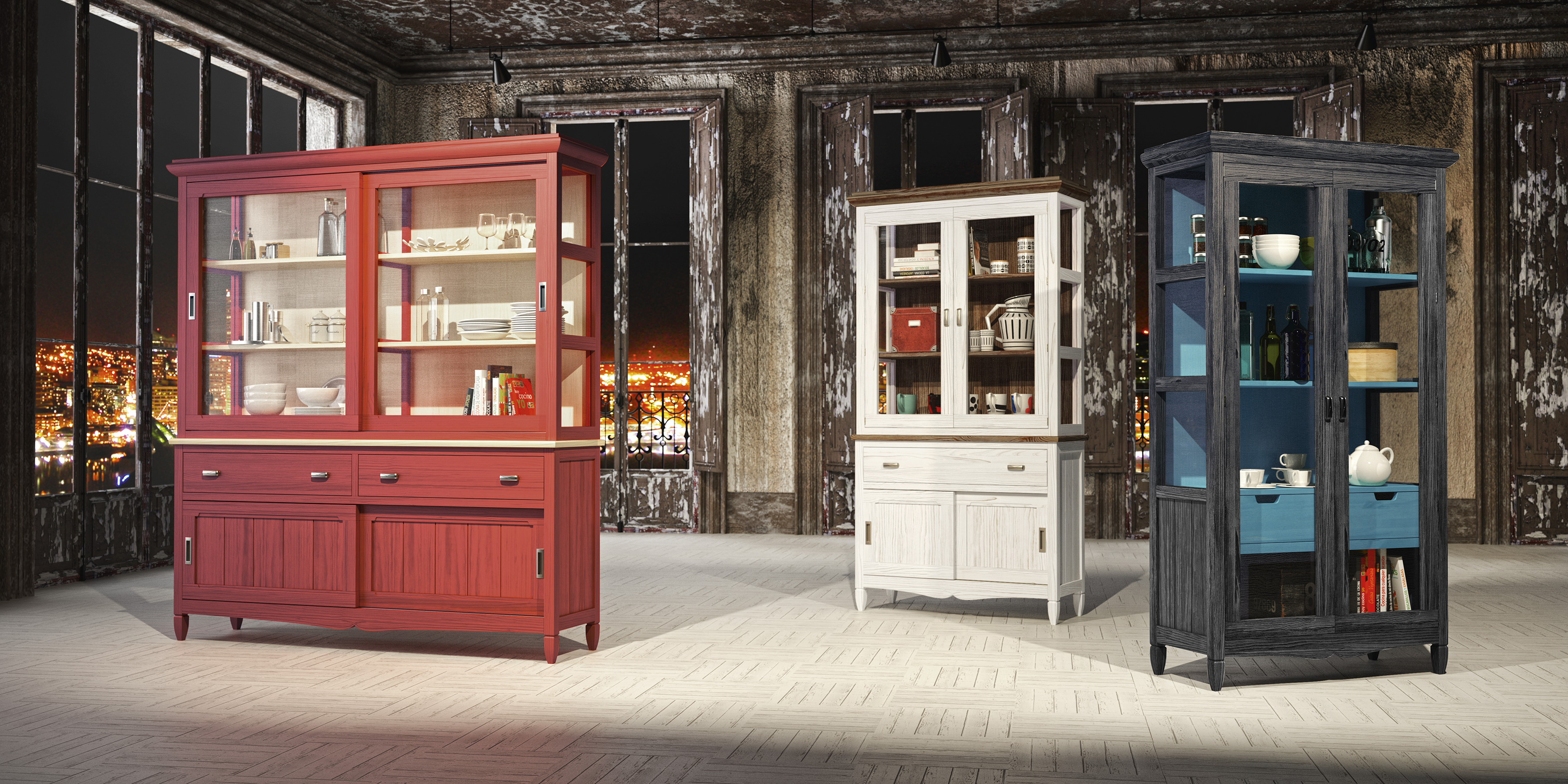 Fabricado en madera de pino con diferentes acabados.