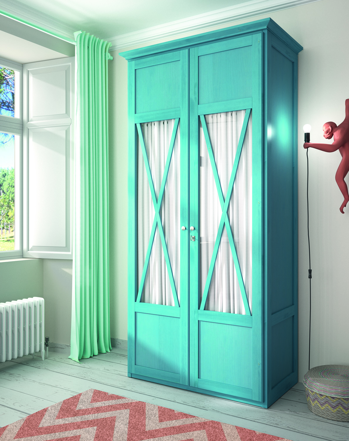 Armario de 2 puertas cristal-visillo acabado en turquesa
