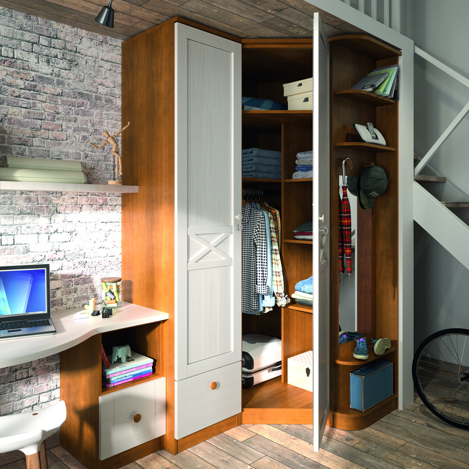 Armario rincón en chaflán, Terminal vestidor de 240 derecho con espejo