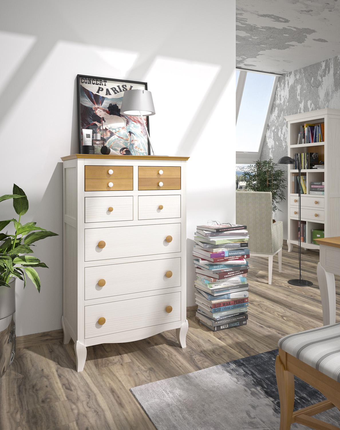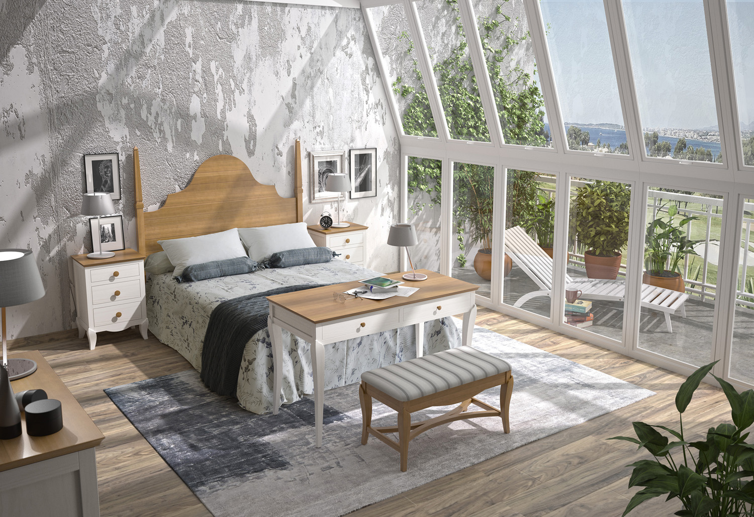 Etiquetas: dormitorio,, cabecero,, tapizado,, madera,, pino,, colores combinados,, mesa, Butaca, Herrajes de primera calidad, Fabricación española, Tablero de partículas, Sinfonier, Librero, Mesa de estudio, mesita de noche, decapé
